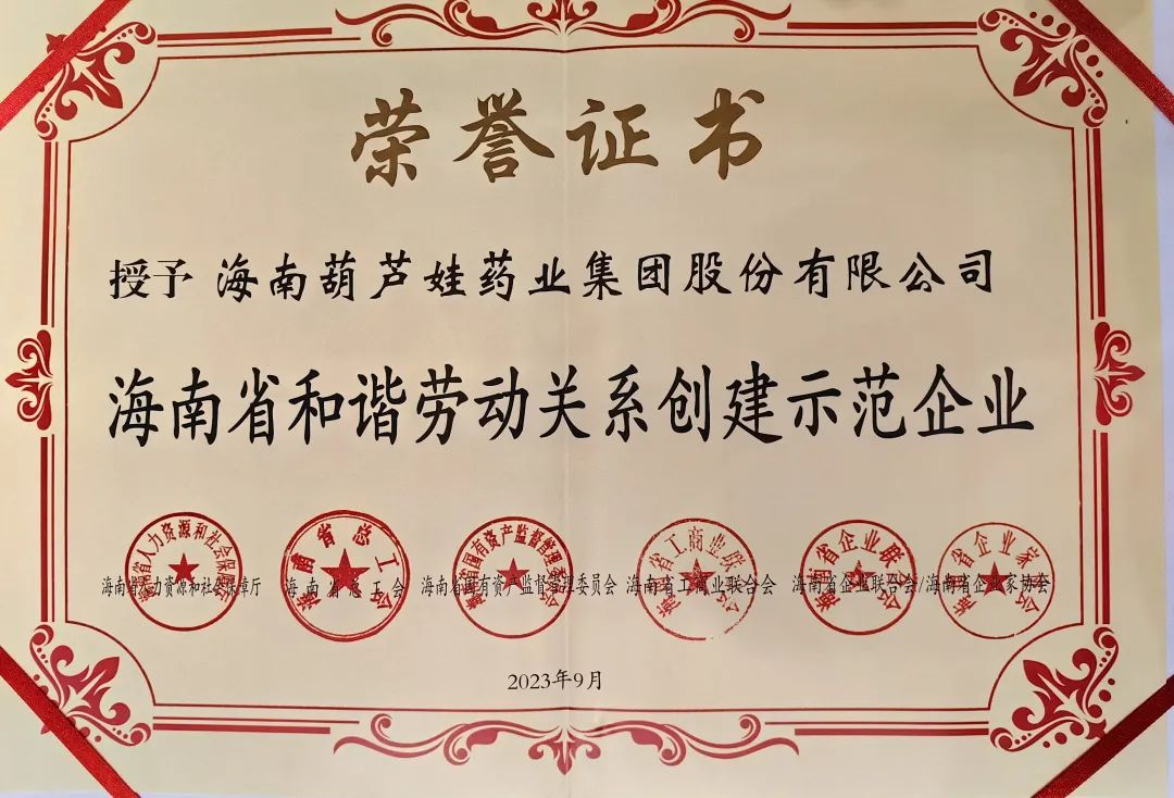 40001百老汇药业集团获评“海南省和谐劳动关系创建示范企业”